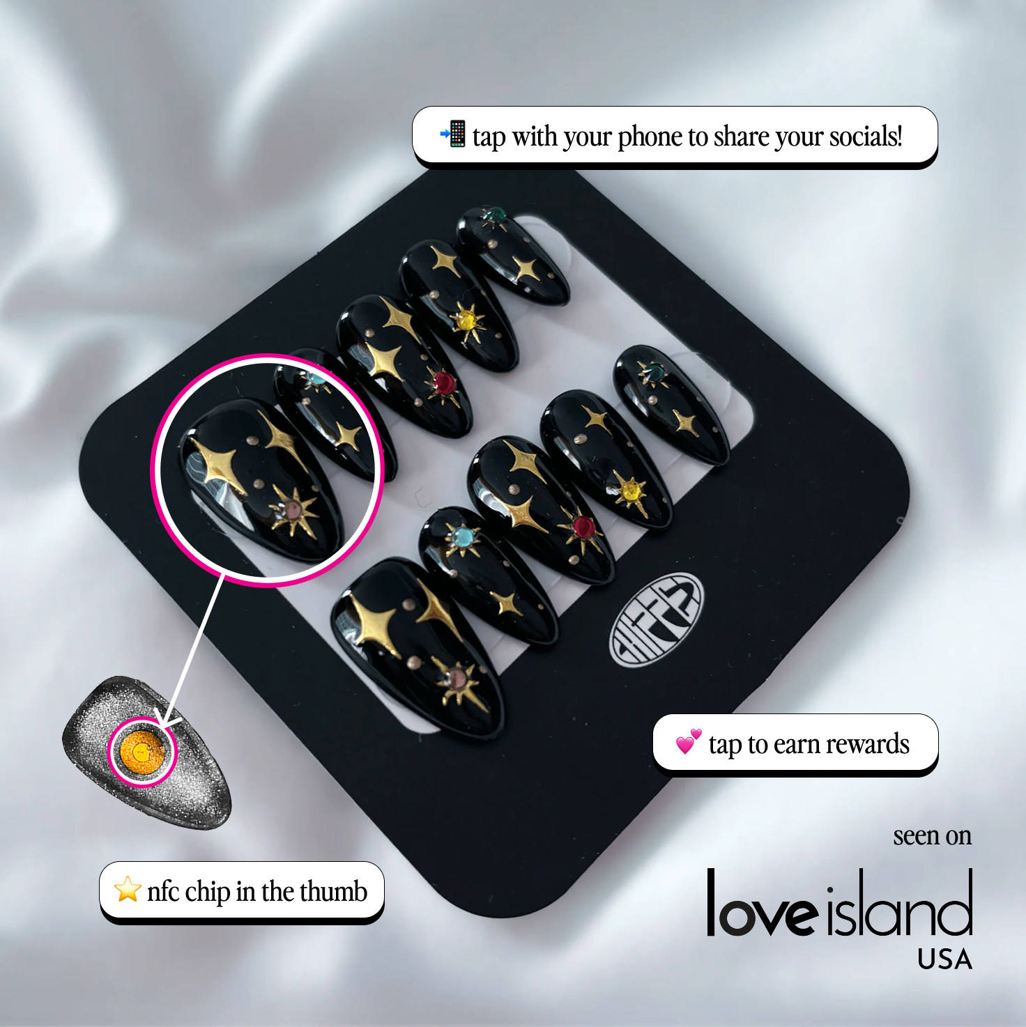 π 10 press-ons (1 smart thumb)Β β¨ NFC chip pre-installed β Β Setup kit: glue, tabs, alcohol wipe, cuticle stickΒ π² 30-sec setup with the app