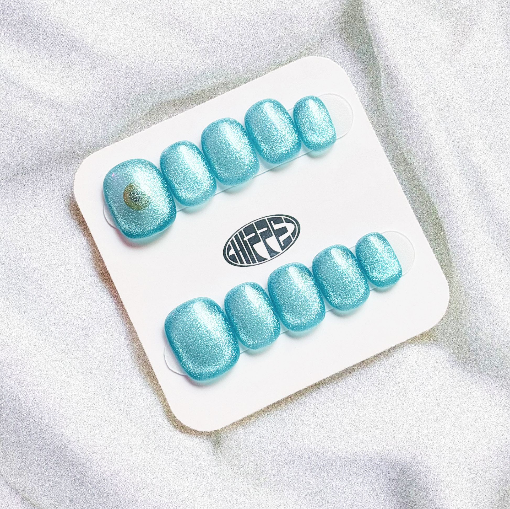 These short squoval cat-eye press-on nails are an emotional throw back to summers in the South of France.